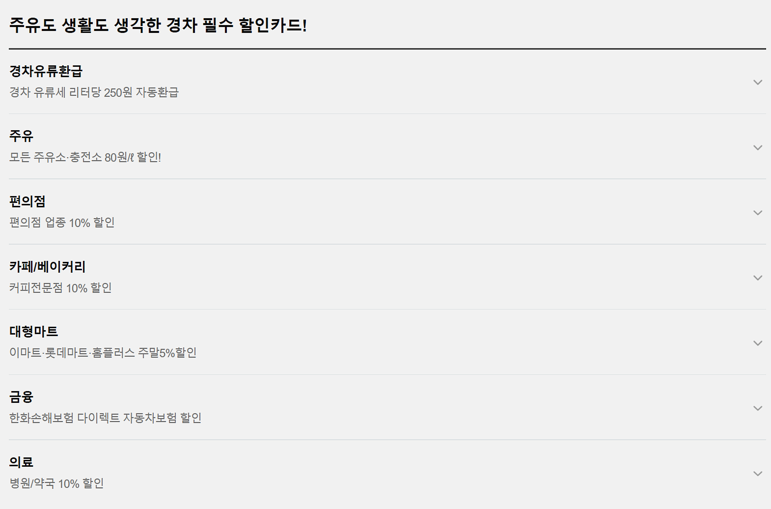 - 추가 혜택: 주말 대형마트 5% 할인, 편의점 및 병원/약국 10% 할인.