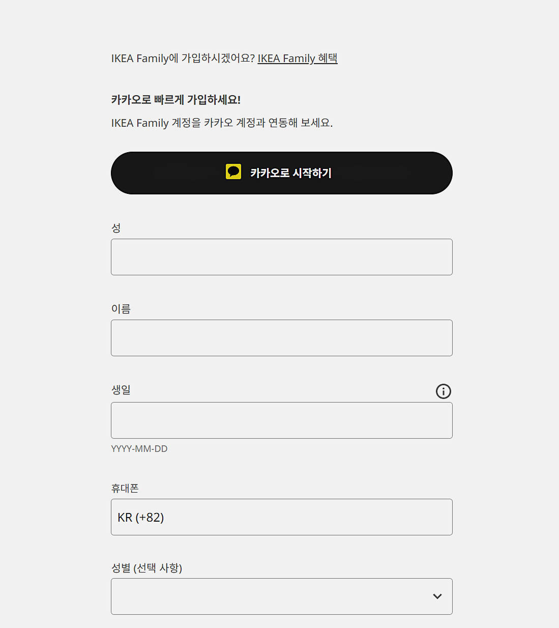 "이케아 패밀리" 섹션에서 "회원 가입" 버튼을 클릭합니다.