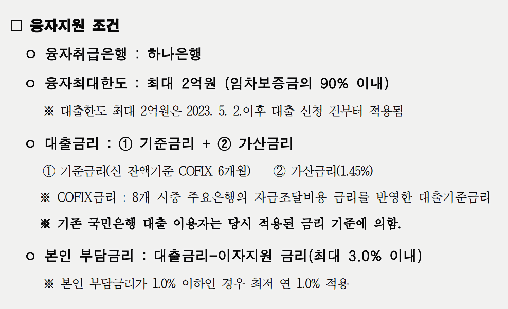 - 대출한도: 최대 2억 원 (임차보증금의 90% 이내)