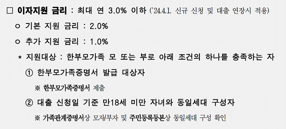 - 한부모가족 등 추가 대상은 1.0% 더 지원