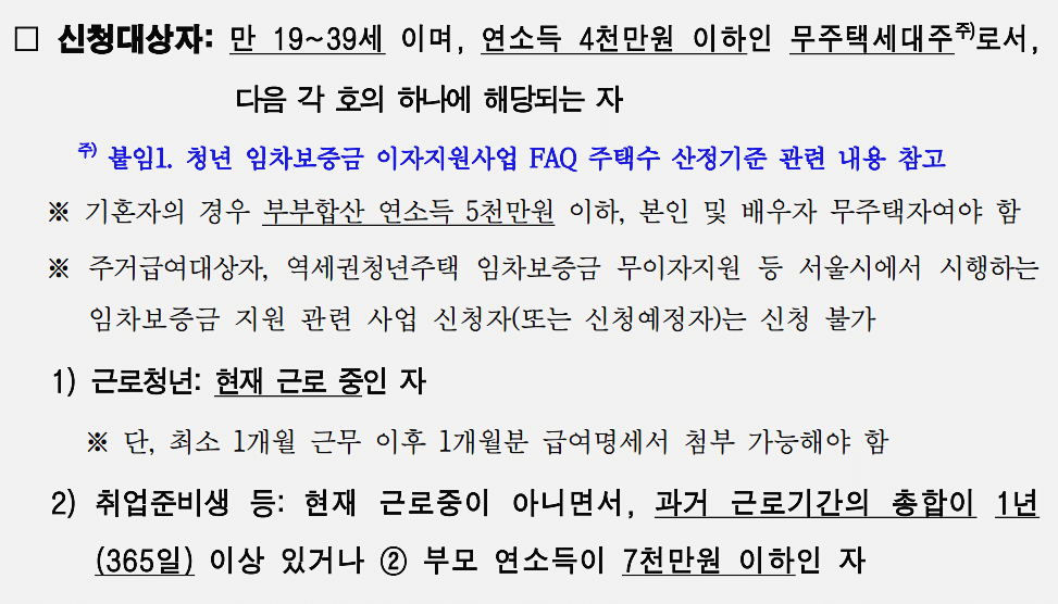 청년 임차보증금 이자지원 사업 신청 시 유의사항