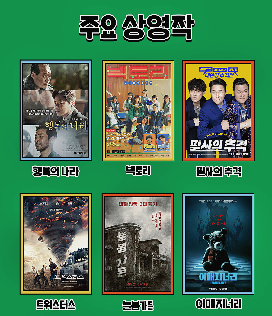 - 대상 영화 : 행사 기간 내 해당 시간대에 상영되는 모든 2D 영화